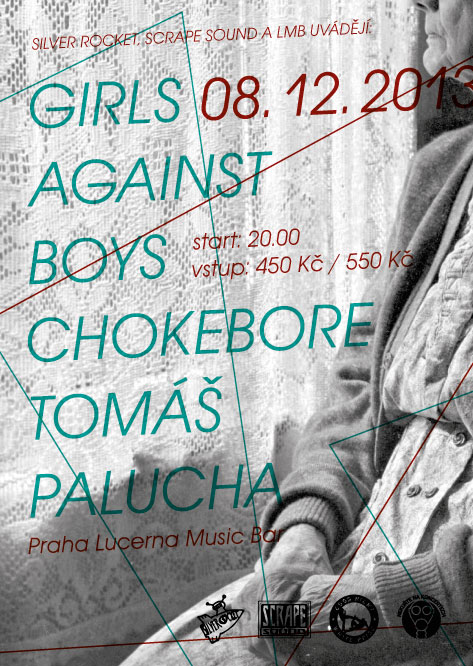 90. léta – to byly roky, kdy jste v televizi mohli běžně vídat kapely jako Melvins, Swans nebo Dinosaur Jr. Fenomén „alternativní hudby“ rezonoval celým světem a do centra pozornosti se dostávaly i formace, které by jinak strávily celou kariéru v garáži. Ne všechny kapely unesly náhlý zájem a s ním související balík pokušení. A jen naprosté minimum z nich zůstalo relevantní až do dnešních dnů. Girls Against Boys a Chokebore k nim bezesporu patří. Dvě bez naprosto klíčové skupiny post punkového undergroundu se potkají na jednom pódiu exkluzivně v Praze: obě kapely přizpůsobily své současné koncertní plány tomu, aby si mohly 8. prosince zahrát v Lucerna Music Baru. Celý večer zahájí české duo Tomáš Palucha, které na sebe letos upozornilo 12“ splitem s Unkilled Worker Machine na Silver Rocket.