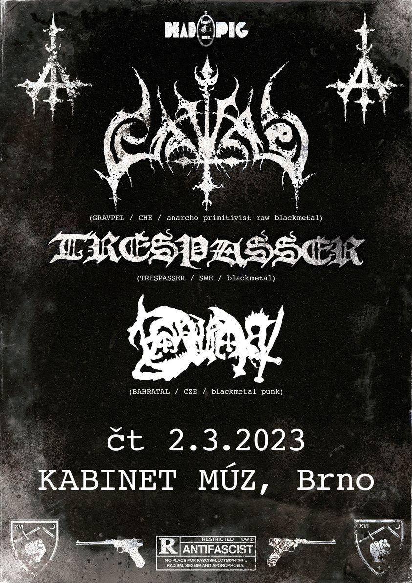 Primitivist raw blackmetal kapela Gravpel z Basileje, to je švýcarská blackmetalová milice, která se vrací k počátkům celého žánru. V době, kdy se blackmetal stává mainstreamem, má toto pětičlenné demoliční komando jediný cíl. Vrátit na koncerty strach a pocit nebezpečí. Násilná punková show a flusanec do tváře všem NSBM kapelám, které se snaží blackmetal používat pro svou nenávistnou ideologii. Čeká nás tupá, syrová a nekompromisní síla agrese nejhrubšího zrna!