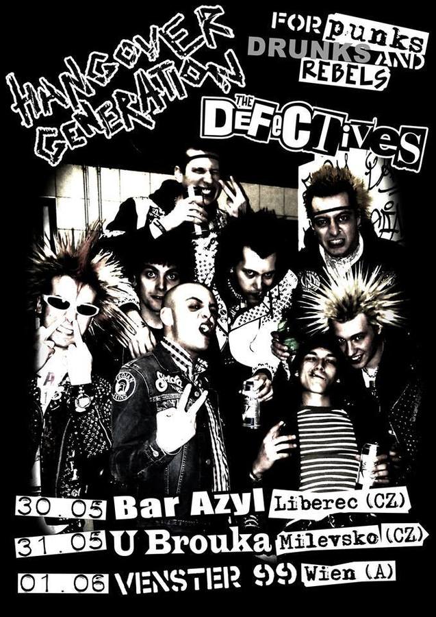 Hangover Generation - Streetpunx -švýcarsko Tyhle šílence si mužeš pamatovat z říjnovýho koncertu s Breakout a Climax,v Azylu se jim tolik líbilo,že se při první příležitosti vracejí zpět na místo činu,sebou vezou zbrusu novej split s The Defectives! The Defectives -Pogopunx šílenství -Itálie Milánská,naprosto oddaná pogopunx banda,na vubec prvním koncertu v ČR! Just War- MotörCharge punx -Praha JustWar.official Nová kapela složená z lidí který znáš z Demarche/Exekuce,Climax,Cripplekorps,Spreading Dread, na jejich bandzone profilu (viz.níž) už můžeš poslechnout dva songy-a bude ti jasno,že jdeš!