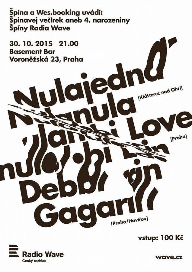 Nulajednanulanula (Klášterec nad Ohří) Hardcore obtížnější ke spočítání a matematika s tolika škrtanci, že se v postupu jen tak nevyznáte. Zato výsledek je nad slunce jasnější – garážový prototyp muziky pro každého, kdo má rád hluk, to celé silně pocákané severočeským blátem. Nulajednanulanula uslyšíte ve Špíně 29. října na rozehřátí den před Špinavým večírkem.