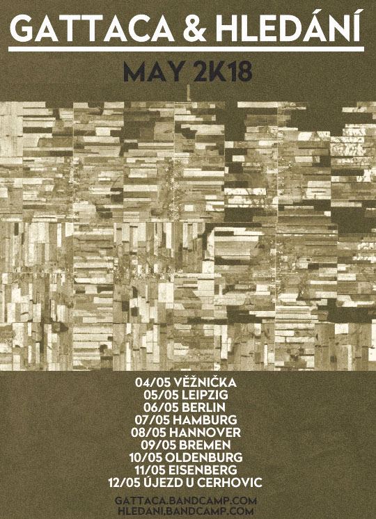 Za pár dnů vyráží na společné turné Gattaca & Hledání. Většina koncertů bude v Německu, ale první a poslední koncert proběhne v ČR (04.05.2018 – Věžnička u Jihlavy – Fotbal proti rasismu a 12.05.2018 – Újezd u Cerhovic –  Hella). Gattaca sebou poveze i nový benefiční kompilační singl pro Anarchist Black Cross. Budou na něm nevydané skladby od Aralkum, Anne M. Christiansen, Aralkum, Empty Hall of Fame a Kovadliny.