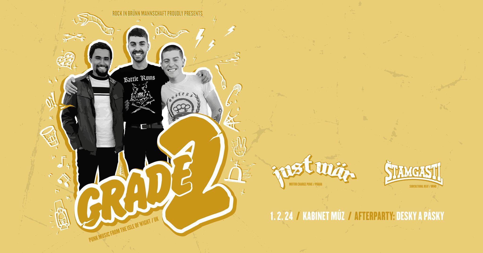 Poprvé v Brně máme možnost zažít koncert jedné z kapel vyhlášené stáje Hellcat records, která spadá pod pracky bad-ass motherfuckera Tima Armstronga z legendárních Rancid. Na produkci posledních desek se podílí i Kevin Bevona z božských The Interrupters. Co k tomu dodat? Pojďme si cestu kapely Grade 2 trochu rozepsat.