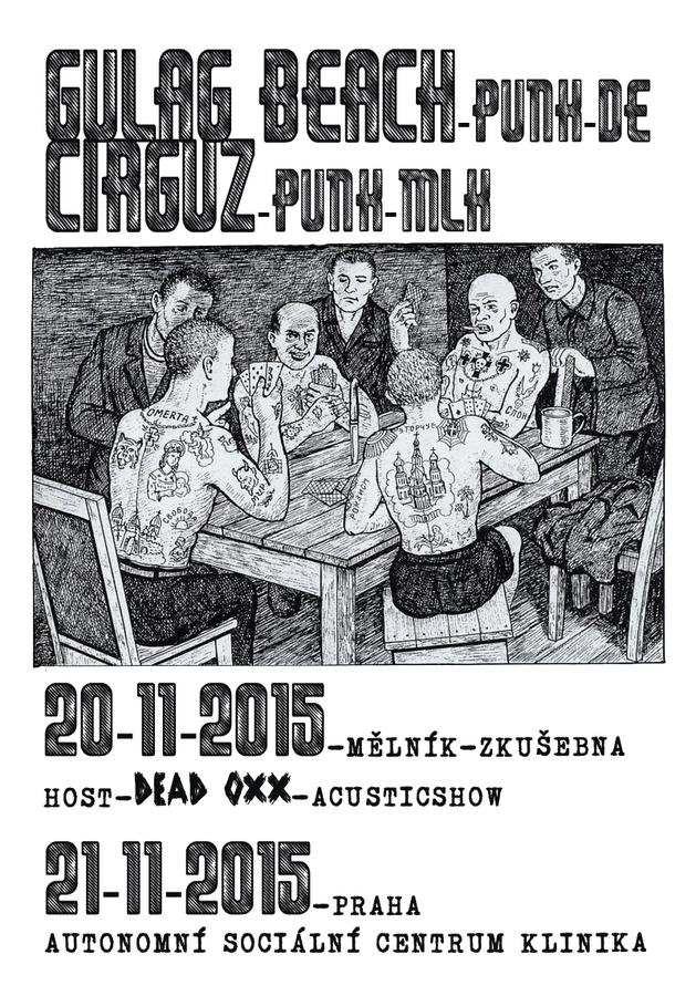 Gulag Beach, jsou z Berlína, ted jim vyšla nahrávka Favela Blues - 6 songů na LP v několika barevných variantách, k poslechu zde - http://gulagbeach.bandcamp.com/album/favela-blues + Cirguz (punkrock Mělník)