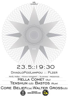 Jako hlavní kapela prvního večírku v rámci Místního Fesťáku vystoupí nenápadná kometa na Rakouském nebi - Hella Comet z Grazu! Výborně kombinující shoegaze, noise rock a kdo by to čekal i pop. Před nimi, se prémiově ukáže Káťa z Manon Meurt na bicí jako součást tria slečen Core Belief, jenž vás zavedou nás na indiánská území zalitá v oparu psychedelie. Jako třešnička na dortu pro hudební fajnšmekry se moc těšíme na dva noise hip hopové projekty z USA – Walter Gross a Tenshun, reprezentanty zámořského undergoundu a diy přístupu k věci. PS: Rumuni Bastos, hrající chytlavej mix emíčka a indýčka potřebovali někde zahrát přímo v tomto termínu. No a hádejte co my na to… A jak bude letos na MF zvykem, tento večer se kromě hudebních vystoupení můžete těšit na výstavu fotek Matěje Hoška a na prezentaci „ještěnevíčeho“ od SLUSH magazine!