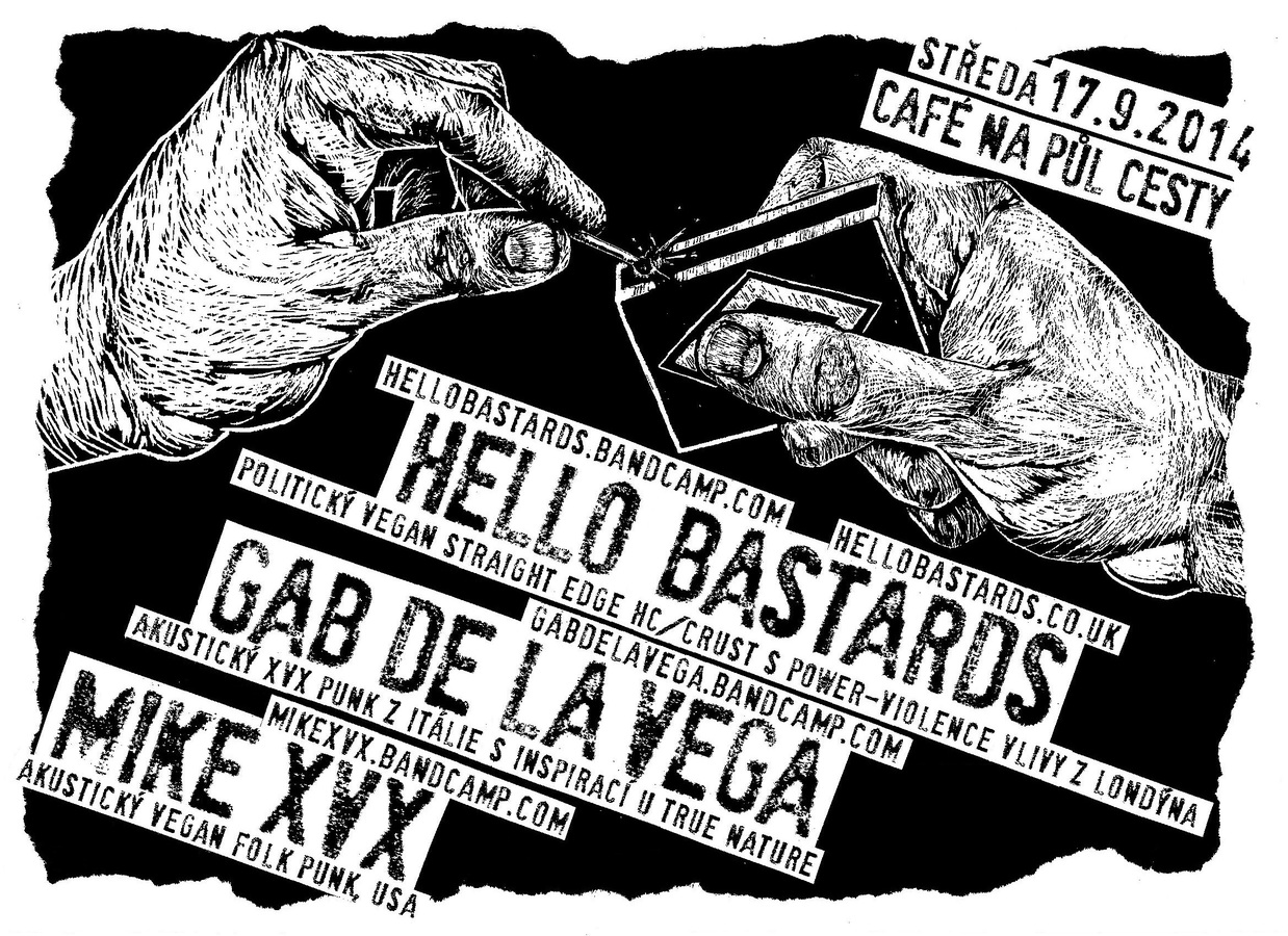 HELLO BASTARDS jsou víc než klasická hardcore kapela spíš parta punks pocházejících z různých koutů světa, která se sešla v Londýně. to co produkují je naštvaný rychlý crust hc/punk s místy až power-violence nádechem, ale v případě týhle party je hudba z velký části formou sdělení. Hello Bastards jsou o diy přístupu, veganství straight edge, anarchismu, benefičních koncertech, distru s knížkama a zinama spíš než s deseti designy předraženýho merche. A taky samozřejmě jméno kapely podle jedný z nejlepších desek hc/punk historie. a tohle bude jejich první vystoupení v Praze.