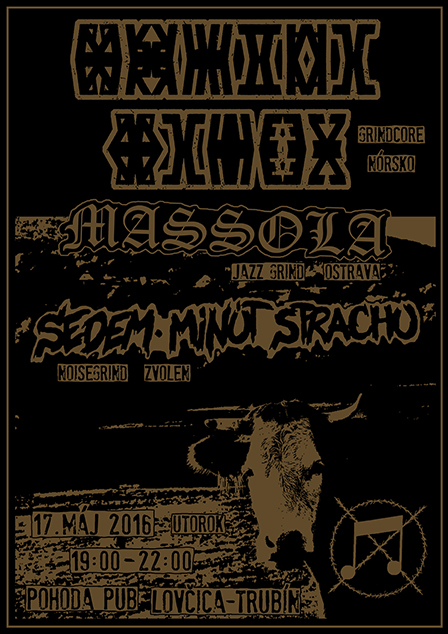 MASSOLA (Ostrava, Česko) - psychopatický, avantgardný free jazz / grind v podaní alt saxafon, bicie a vokál, s hosťom Skuldom na basu. Ex - Social Deformity, Ex - Zabloudil http://bandzone.cz/massola