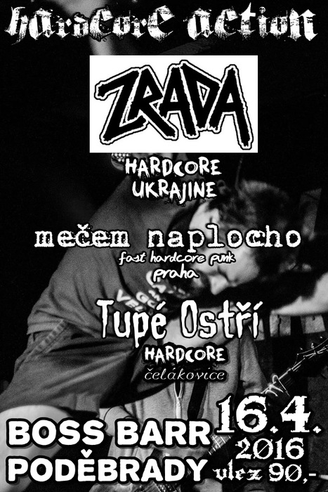 Pokud se vše vydaří, tak nás navštíví 16. duba v Poděbradech Zrada což je divočina z Ukrajiny a to není zrovna kousek. Doprovodí je již dobře vcelku známí Mečem naplocho a Tupé ostří.