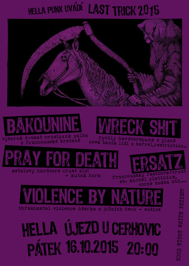 Hella punx uvádí: BAKOUNINE, ERSATZ, PRAY FOR DEATH, WRECK SHIT, VIOLENCE BY NATURE