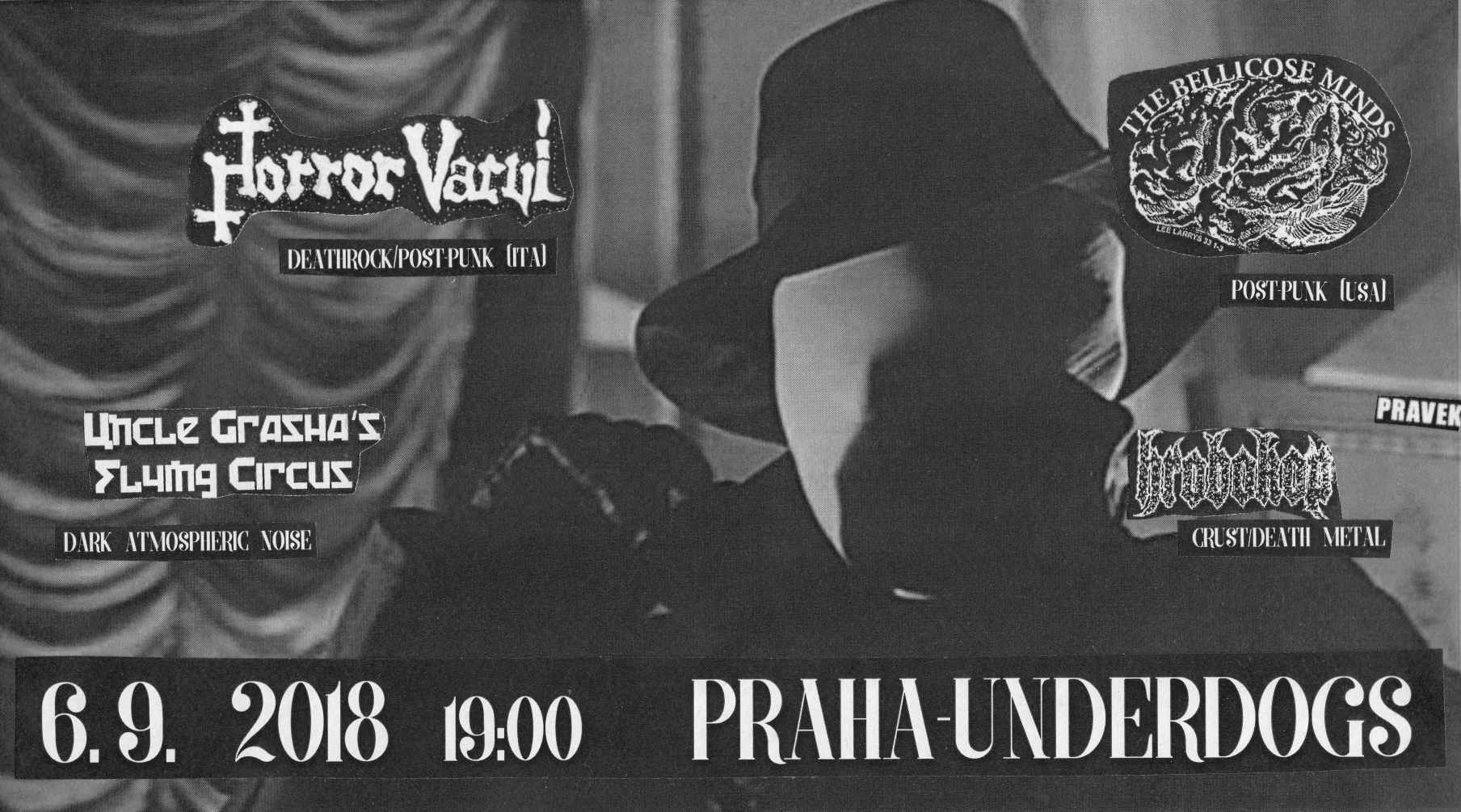 Horror Vacui (post-punk/deathrock, ITA) Horror Vacui se dostali do širšího povědomí v roce 2014 deskou Return of the Empire, nevybavíme si nikoho, komu by tehdy nevystřelila mozek z hlavy. Vlastně to byla jedna z prvních moderních soudobých deathrock/post-punk věcí, které se k nám dostaly, takže jsme si naplno přičichli a už nás to nepustilo. Neskutečná atmosféra a přitom punkový nášlap jak hovado + ještě prostředí a zvuk v Underdogu – už to cítíš? https://horrorvacuilegion.bandcamp.com/