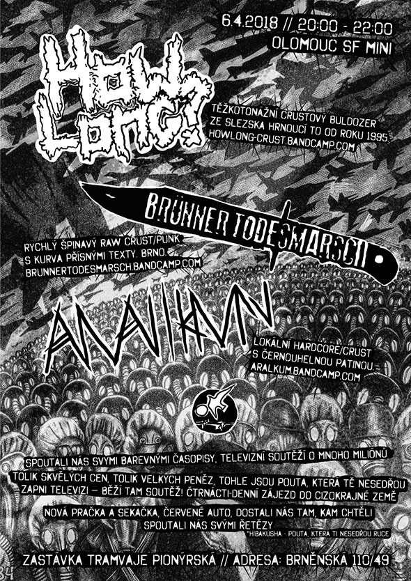 How Long? - Těžkotonážní crustový buldozer ze Slezska hrnoucí to od roku 1995. "Města otroků jsou v obležení hald lidských kostí a těžních věží. Zkurvená noc a depresivní den - Silesian Hell..." https://howlong-crust.bandcamp.com/