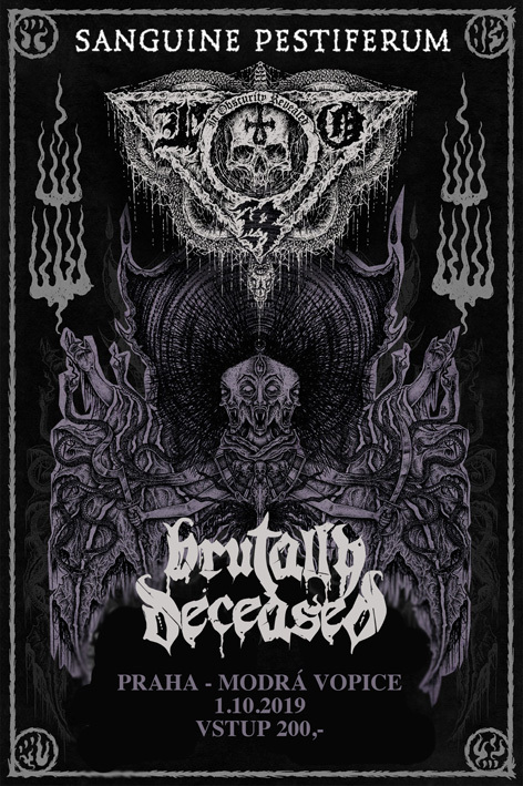 Další kapelou, která tento večer vystoupíjsou BRUTALLY DECEASED. Lety prověřená death metalová akvizice, které aktuálně vyšel na DoomentiaRecords split s polskými Embrional nesoucí název ScornfulDeathTrail se představí v nové sestavě,a tak zde budete mít jedinečnou možnost vidět je poprvé naživo.