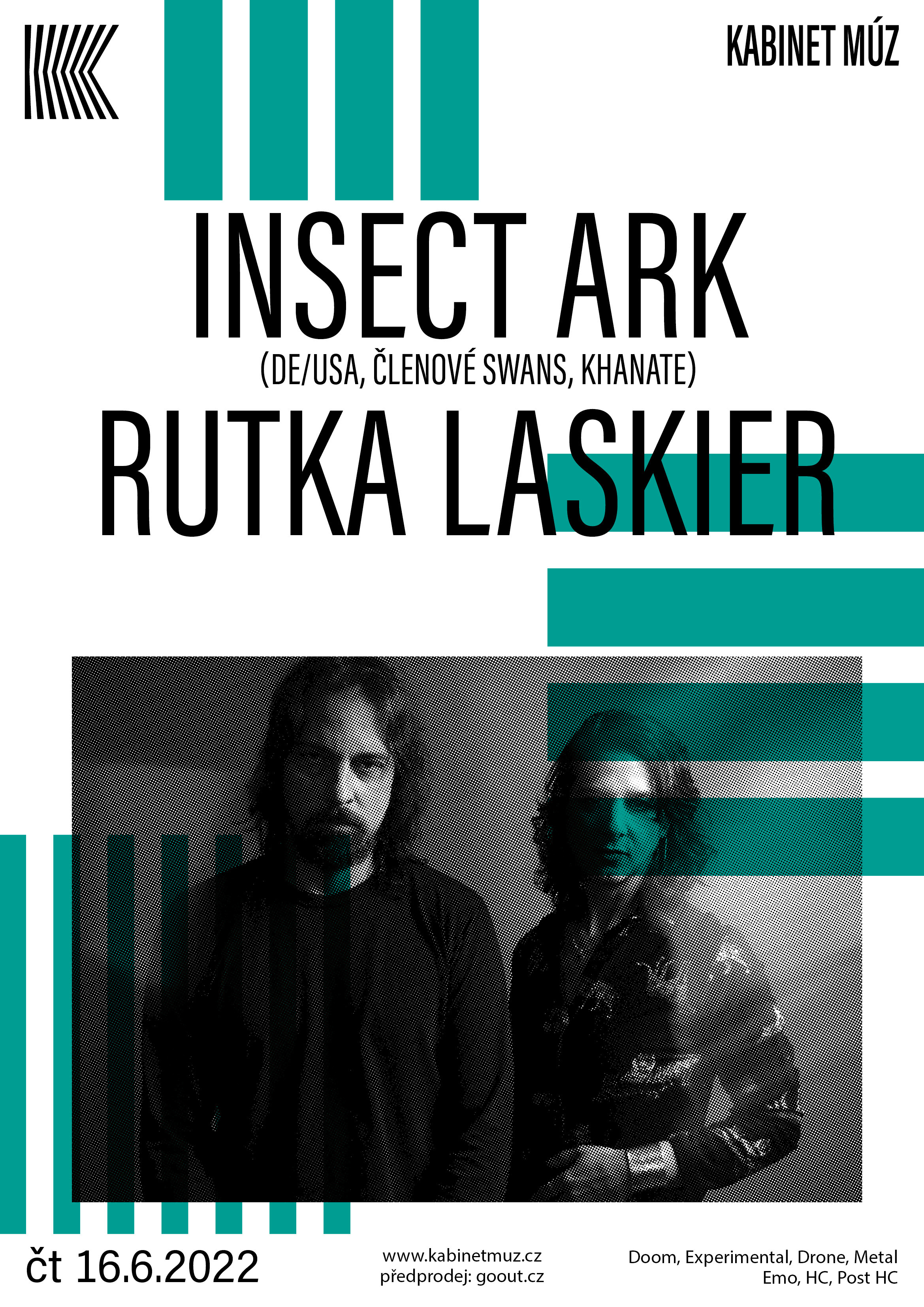 INSECT ARK (DE/USA, členové Swans/Angels of Light, Khanate, Profound Lore Records) Co hraje v pozadí, zatímco se v noční můře schováváte před příšerou? Drásavá, atmosférická hudba Insect Ark. Toto berlínské duo s neuvěřitelnou zručností vytváří znepokojivé sonické krajiny, za které by se nestyděla většina hororových filmů. Multiinstrumentalistka Dana Schechter má pod hlavičkou Insect Ark na kontě již několik desek. Ve spojení s bubeníkem Timem Wyskidou (bubeník Khanate!) vystupuje až od začátku letoška, ale entuziasmus publika ohledně jejich spojení je všudypřítomný. Dvojice se ve své hudbě vydává do obskurních zákoutí žánrů jako avant-metal nebo psych doom, experimentuje, kde to jen jde, a výstupy jejich činnosti jsou natolik přesvědčivé, že front-woman Daně Schechter zajistily členství ve Swans, Zeal And Ardor, Wrekmeister Harmonies, Årabrot, ... https://www.insectark.com/ https://insectark.bandcamp.com/ https://www.facebook.com/rutkalaskierband