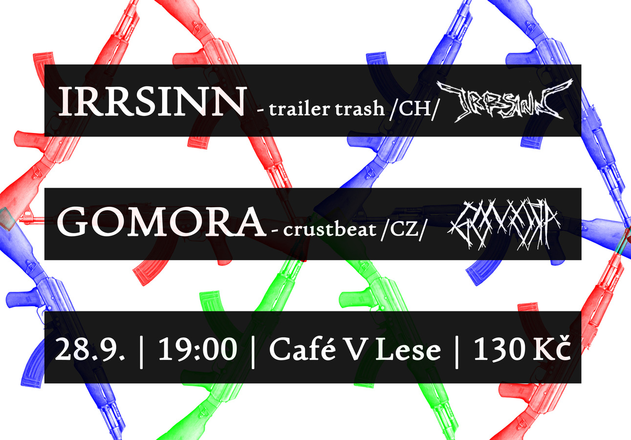 Na začátek podzimu k nám přijedou ze Švýcarska pankáči IRRSINN. Představte si squat, městečko obytnejch přívěsů, nepojízdnejch traktorů, různejch starejch aut, maringotek a dalšího haraburdí na předměstí u dálničního sjezdu. Komu se vybavil legendární Schrottbar,ten to trefil. Tak tohle je přesně prostředí, ze kterýho se svým anti-fa punkem/crustem tihle neúnavní borci pochází.