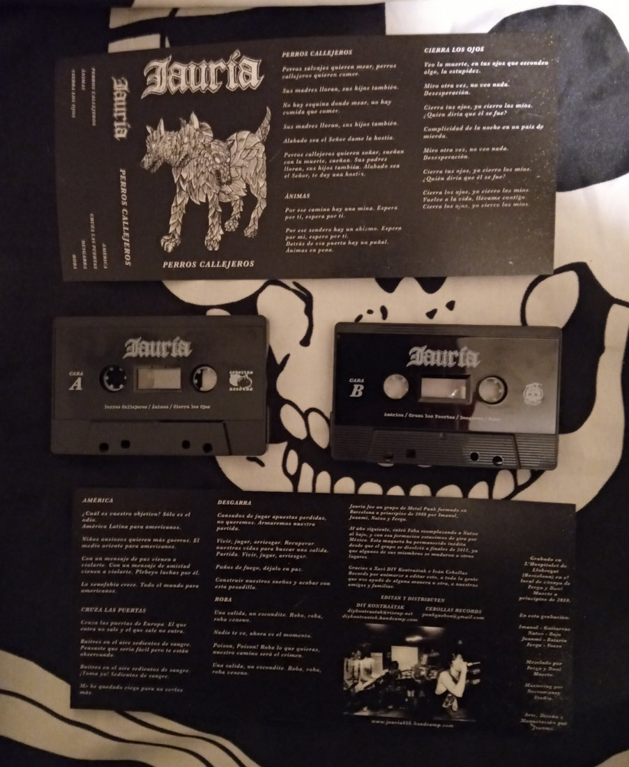 Máme tu kazetovou nahrávku od JAURIA, je to surový, špinavý a agresivní, přesně jako tento svět, vůbec se s tím nemažou, raw shit d-beatcrust punk, jeden ze dvou labelů kde kazeta vyšla je Xavi z Los Blokes - DIY Kontraatak, jedna z mnoha kapel kytaristy Imanola solící ultra zběsilou rychlostí, čitelné thrashové rifi s crustem, tohle je čistě smrtící kombinace. Tak jako to v té době drtily No Conforme, Mördare s tím rozdílem, že tohle je ještě větší marast syrových kytar, dupotu bicích, basa má zvuk jako padající šrapnel a ještě více zoufalejšího ultra naštvaného zpěvu, ono je to z té doby, po dvanácti letech se konečně, posmrtně demo dostalo na svět. Kapela neměla moc dlouhou existenci, za to jim to hrálo zatraceně dobře, členové najdeš v kapelách jako Horrör, Cruz, Peligro!, Siberiä, Arrest, Leadershit, Etacarine, Los Dolares, Drömdead a spoustu dalších. Nahraval Dani Muerte (Atentado, Über aktuálně Una Bestia Incotrolable). Celé je to k poslechu na bandcampu kapely, za mě jednoznačně top píseň "Cierra los ojos" , celkem sedum zběsilých rozstřelů. Tyhle potulní psi vám dají co proto. Kazety jsou na cestě do distra kdyby někdo měl náhodou zájem.