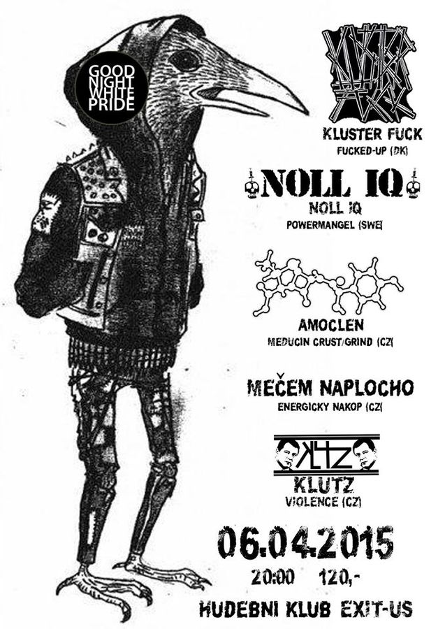 Kluster Fuck -------------------------- -------------------------- --------------- (DK, fucked up fastcore) www.facebook.com/pages/ KLUSTER-FUCK/ 1551885148370658?fre Čerstvá dánská sypačka s ženským vokálem, v našem prostředí nikoli neznámá. Tato smečka již drtila ušní bubínky společně s Bombatolcser, Kruger či Jonestown, nemluvě o přátelích z Řecka Dirty Wombs a Lifewreck. Takže prostě hluk, zelenina a naklepané hýždě! Noll IQ -------------------------- -------------------------- ---------------- (SWE, Powermangel/Grindpunk) zeroiq.bandcamp.com/album/ demo-2013 Nulový inteligenční kvocient mají bezpochyby ti, kteří volili Thatcherovou nebo podporují Konvičku plnou chcánek. Během této švédské úderky vás však čeká vysoký kvocient zlámaných končetin v pogu! Amoclen -------------------------- -------------------------- ---------------- (CZ, medical crust/grind) http://bandzone.cz/amoclen Amoclen vzniká v roce 2004 v Jíčíně, poblíž Rumcajzova lesa Řáholec. Kapela kombinuje hybridní crust a grindcore, tak jak zkušený lékárníci provádí různé lékárenské experimenty. V textech se zaměřuje kapela právě na rozličné vedlejší účinky těchto "léčiv". Tito veteráni mají na svém kontě mimo jiné splitko a Agathocles, projeli křížem krážem Evropu a mnozí z vás si je jistě pamatují i z Obscenu. Po krátké hybernaci se Amoclen vrací zpět s částečně obměněnou sestavou. Klutz -------------------------- -------------------------- ---------------- (CZ, Kofein violence fastcore) http:// klutzviolence.bandcamp.com/ album/ku-klutz-klan Politický, úsečný a vzteklý! Počítám, že tento východočeský Ku-Klutz-Klan vám nemusíme více představovat. Možnost si vybrat neznamená svobodu! Mečem naplocho -------------------------- ---------------------- (CZ, raw punk/fastcore) www.youtube.com/ watch?v=n-M56SK8OVo Čerstvá pražská záležitost od členů kapel Strýček Zvrhlík, Encore či Třetí Stupeň Tortury, což už vám jistě stačí na to, abyste se mohli těšit na vskutku parádní záležitost. Necelých deset minut hluku a vzteku, to je rána mečem - naplocho! 6.4. 2015 Hudební klub Exit-us (Sokolovská 195, 190 00 Prague) ZAČÁTEK VE 20:00 VSTUP 120,-