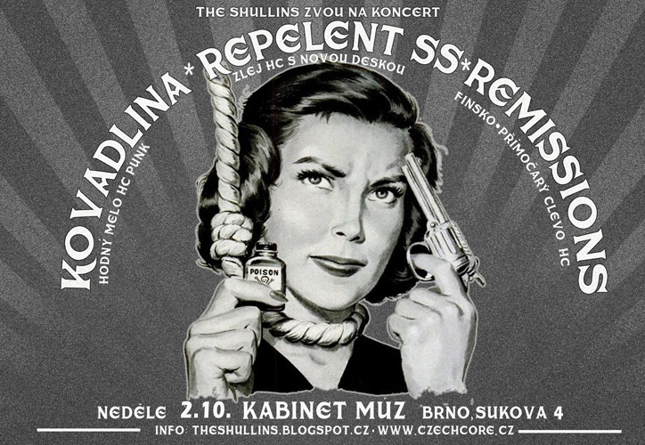 REMISSIONS (FINSKO) Nekompromisní, přímočarej Clevo hardcore z Tampere. První turné, které Kovadlina odjela patřilo Finsku a společnost jim dělalo právě toto družstvo. Tentokrát se prohodila mapa. Očekávat můžeme mimo jiné materiál z nové desky. https://remissions.bandcamp.com https://www.facebook.com/Remissions http://sic-semper-remissions.tumblr.com/