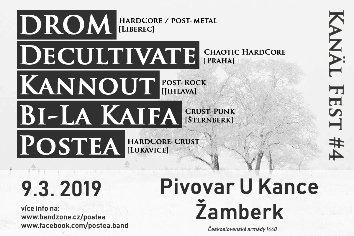 Postea [ https://postea.bandcamp.com/ ] místní neocrust parta z Lukavice. Nová nahrávka čerstvě pokřtěná.