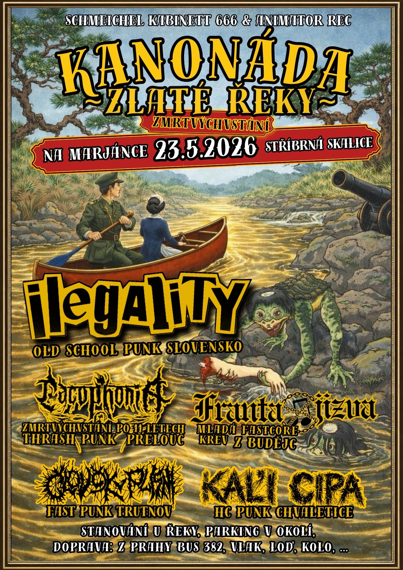 Ano je to tak! Kanonáda vstává z popela jako bájnej fógl Fénix! Pište si do diáře tohle datum! Stanování zdarma u řeky, parkování v přilehlých ulicích, doprava - bus 382 z Prahy, vlak, loď....