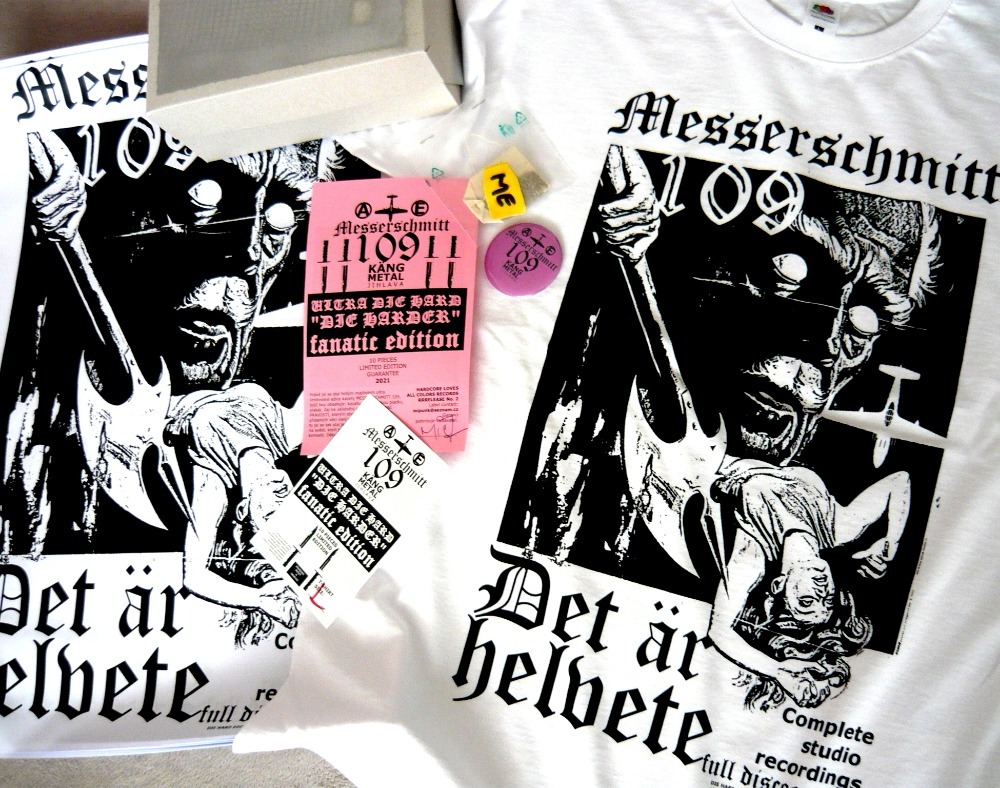 MESSERSCHMITT 109! Tahle legendární swedish crust / hardcore / käng / metal / punk kapela z Jihlavy se členy Průmyslová smrt, Rapsöd, Disbeatless a Lack of Sun to zabalila před 12-ti lety, ale zůstal po nich materiál, který čekal na vydání až dodnes! Kapele se v Andy´s Sound studiu v Havlíčkově Brodě podařilo v zimě 2008 nahrát zvukově naprosto excelentní záznam z nějž historicky vyšla půlka na vinylových formátech a zbytek nevyšel nikdy! Mičlův minilabel HARDCORE LOVES ALL COLORS RECORDS vydává kompletní studiovou session na kazetě v omezeným nákladu 50 kusů, z toho 10 kusů jako ULTRA DIE HARD FANATIC EDITION BOX s trikem, A2 plakátem, 6 cm plackou, třezalkovým čajem na uklidnění. Vše je handmade a homemade! Celý náklad pak vychází na růžový kazetě uložený v krabičce se zlatými dvířky. Objednávej: mipunk(A)seznam.cz a ochutnávka zde.