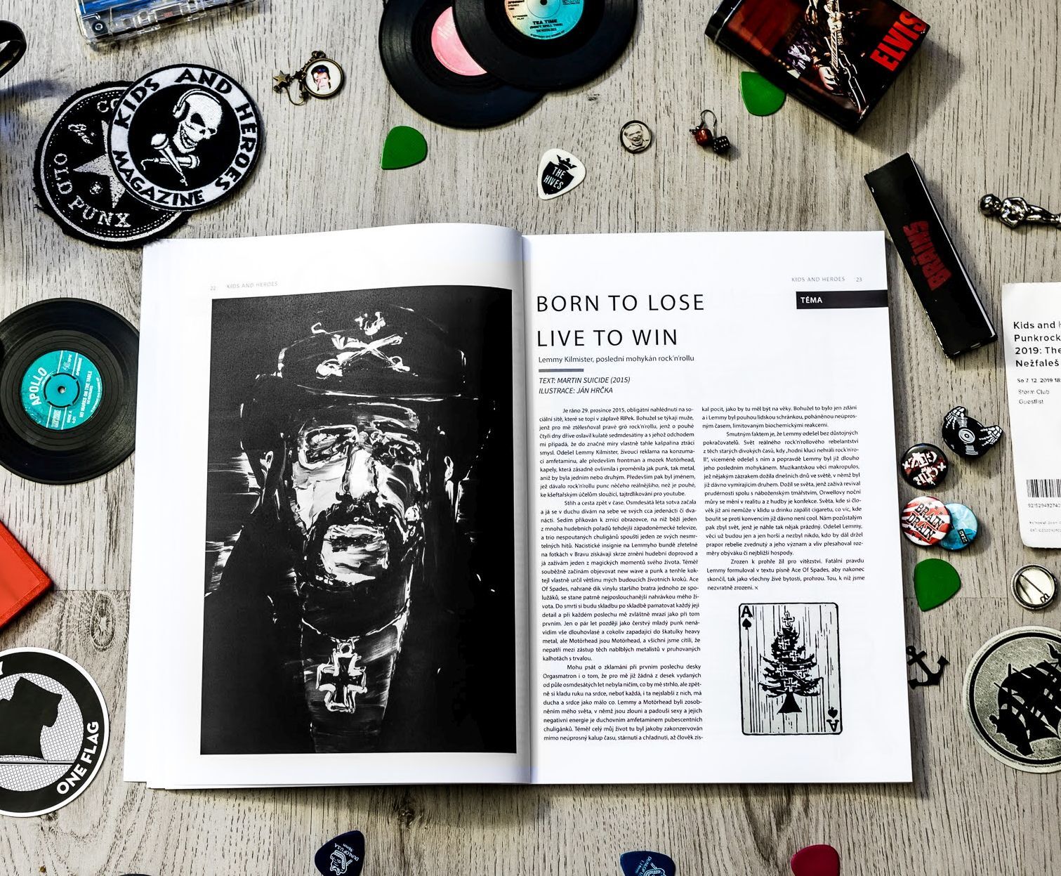 Půl kila čtení a originálních ilustrací aneb Kids and Heroes vydávají tištěný fanzine. Půl kila čtení, 152 stran A4, přes 50 článků od 27 autorů, více než 50 originálních ilustrací a jako dárek flexi disc na váš gramofon. Tak vypadá ve zkratce premiérové číslo nového tištěného časopisu, za kterým stojí redakce hudebního webzinu Kids and Heroes. Zine vyšel 7. prosince v nákladu 300 kusů a vyprodal se už v předprodeji. Momentálně se připravuje dotisk, zamluvit si svůj výtisk můžete na www.kidsandheroes.com/zine (zde najdete i více informací o obsahu, atd.)