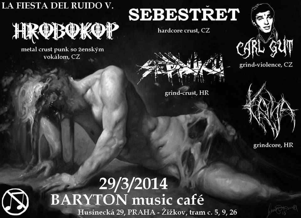 KRLJA - masaker grindcore mixnutý death metalom, Zagreb, Chorvátsko https://www.facebook.com/pages/Krlja/185826858163849?fref=ts SEPPUKU - chorvátsky grind crust čiastočne tvorený členmi Krlja, Zagreb, Chorvátsko https://www.facebook.com/pages/Seppuku/243082395777082?fref=ts CARL GUT - nová grindcore powerviolencová smečka, Oslavany, CZ http://bandzone.cz/carlgut