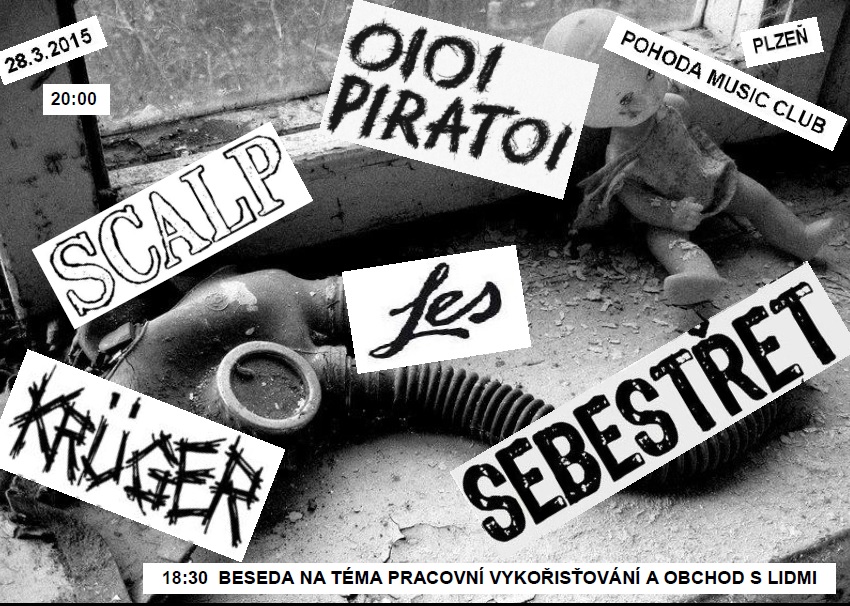 Zdar jak pes, dovolujeme si vás pozvat na menší jarní dostaveníčko v Pohodě v Plzni, kde vystoupí Kruger, LES, OiOi Piratoi, Scalp a Sebestřet. Před koncertem proběhne beseda s teréňákama o problematice obchodu s lidma, lidských práv a vykořisťování cizinců v ČR. Rádi všechny uvidíme a přijďte rozjet debatu a něco "nového" se dozvědět, případně něco nového sdělit... Díky! Těšíme se!