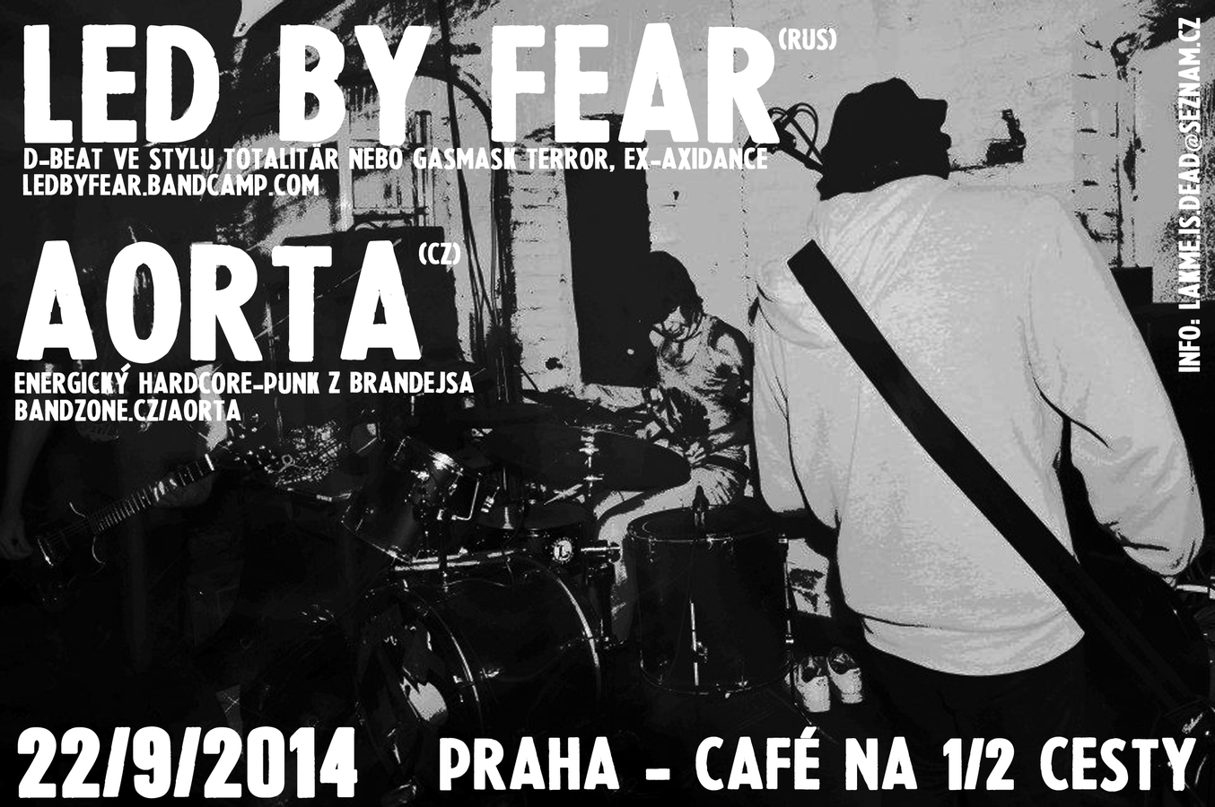 LED BY FEAR (Rusko) - přísný politický dbeat pod taktovkou kytaristy z AXIDANCE. Turné měli jet už vloni, ale museli ho zrušit kvůli tomu, že basákovi neudělili vízum. Tentokrát už by všechno mělo být v pořádku. Nedávno jim vyšel výborný split s ADRIANO CELENTANO. Z přirovnání mě jako první napadají GASMASK TERROR, posuďte sami: https://ledbyfear.bandcamp.com/ Vloni na czechcore vyšel se Sergeyem rozhovor - tady je: http://czechcore.cz/redakce/Rozhovor-se-Sergeyem-%28Led-By-Fear,-Axidance%29-P7021506.html