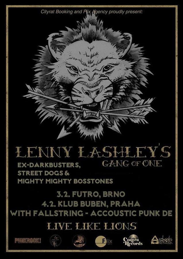 “Gang of One“ je nejnovější projekt matadora bostonské punkrockové scény Lennyho Lashleyho. Zakládající zpěvák a kytarista Darkbusters a chlápek co má za sebou hostování u Street Dogs a Mighty Mighty Bosstones! Má v oblibě vydávat vinylové singly a ty nahrává ve společnosti pánů z Bouncing Souls. Vydává je u Pirate Press Records. V úterý 3.2. se zastaví v brněnském Futru (Palackého třída 64) a ve středu 4.2. v pražský díře aka Bubnu (Myslíkova 8). Společnost a předskokana na tour mu dělá německý sympaťák Fallstring.
