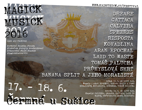 Magick Musick je tu letos po osmé a do dvou plnohodnotných dnů přiveze 11 potvrzených kapel. Zatím není uzavřené pořadí ani výše vstupného, tohle bude dořešené těsně před festivalem a včas zveřejněné na kmenovém webu www.madmusick.cz/festival. Známy jsou však kapely jednotlivých dnů, které si dovolujeme představit v alfabetickém pořadí.
