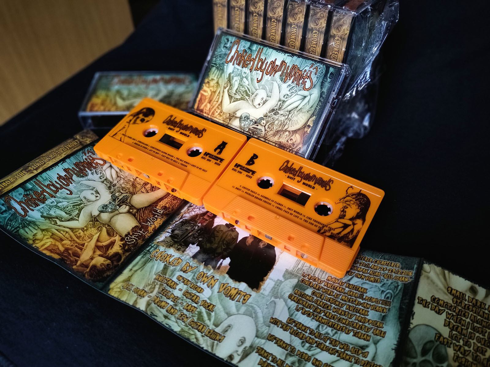 V prosinci vyšla pod španělským labelem HECATOMBE RECORDS kazetová verze 2. CHOKED... - Shit World. Jde o limit 100ks, k dostání u kapely nebo u labelu. Dále jsou k mání nové čepice, kraťasy, či dlouhé rukávy. Viz. odkaz na MC a další merch. Další info mail - kvetak.chov(dot)seznam.cz.