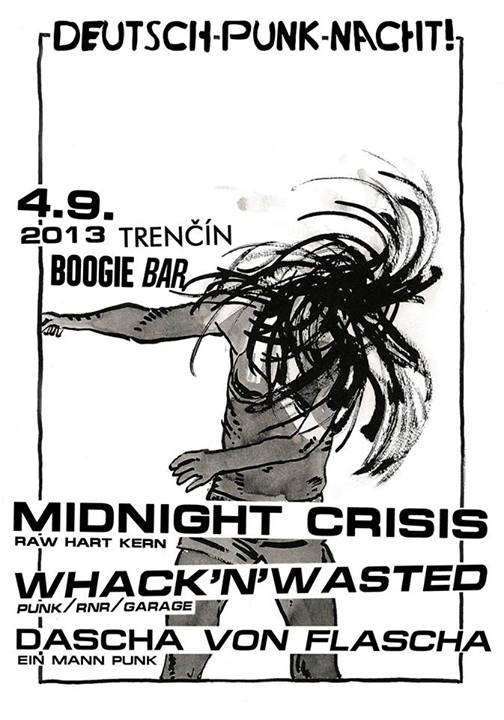 WHACK & WASTED tu je to trošku iné. povedal by som viac prístupné a melodickejšie. ale nedajte sa zmiasť, je to stále nabudený hlučný rokenrol jak hovado, stále punkové korene, stále výbušná muzika a tigri opäť už prešli nejaký ten špinavý klub v kapelách ako The4sivits, Zentralheizung of death, Spastix. demo je dokonalé a chytľavé hitovky sa budú sypať celý večer. dôkaz: http://whackandwasted.bandcamp.com/