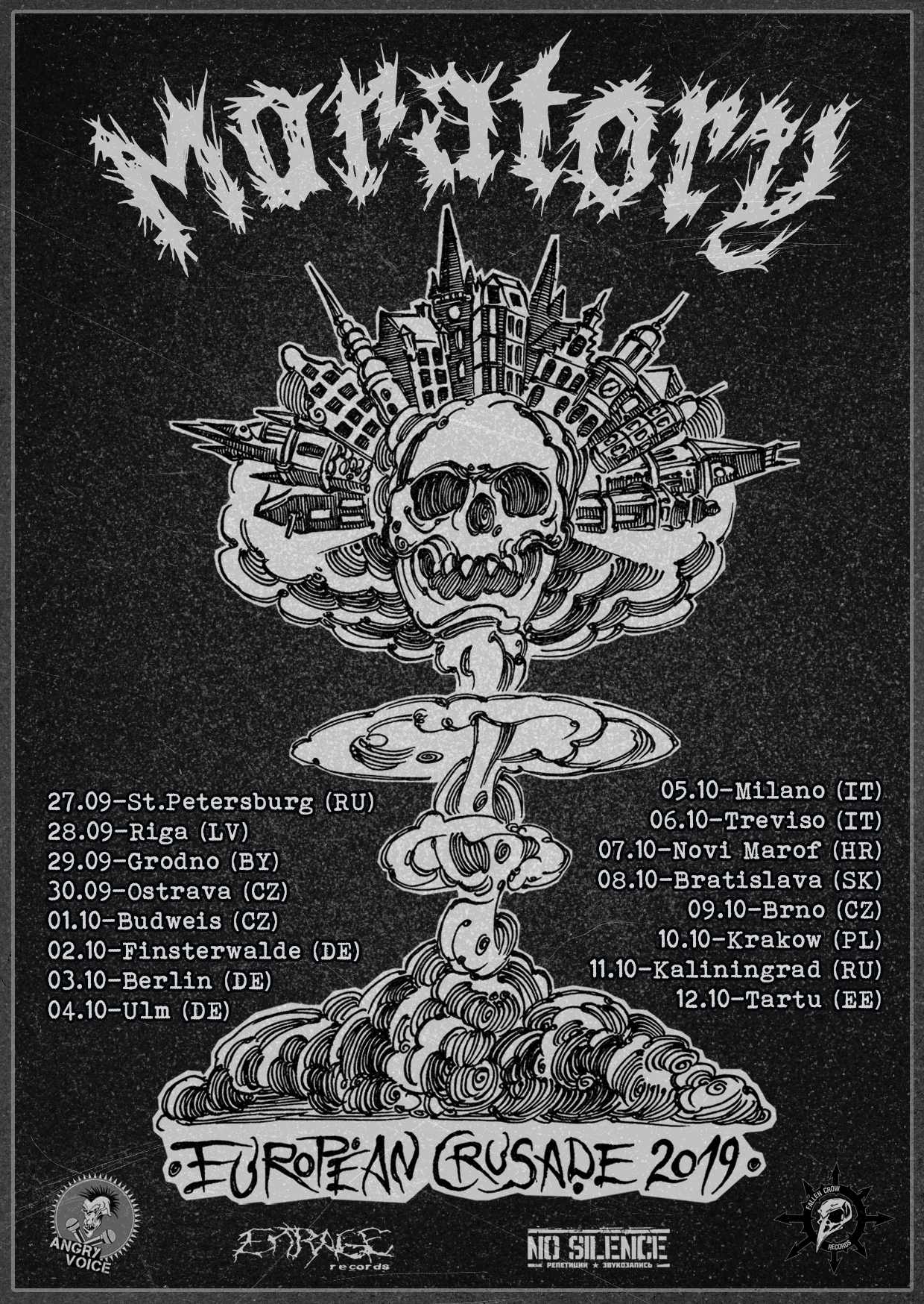 Tento měsíc vyrážejí na evropské turné metal punkáči ze Saint Petersburgu MORATORY. V Čr odehrají tři koncerty a s sebou budou mít nejnovější nahrávku, split kazetu se SpeedKöbra. Celá je k poslechu na bandcampu kapely.