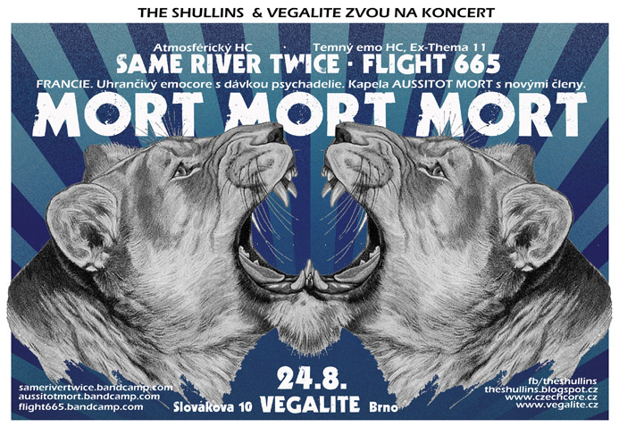 SAME RIVER TWICE - Atmosférický hardcore v domovském Vegalité. Mort Mort Mort a Same River Twice sice dělí nejméně 1000 kilometrů od jejich domovských měst, ale spojuje je podobný hudební feeling a také razítko francouzského Swan Sound Studia a Guillauma Doussauda, kteří se více či méně podíleli na zvuku desek obou kapel.
