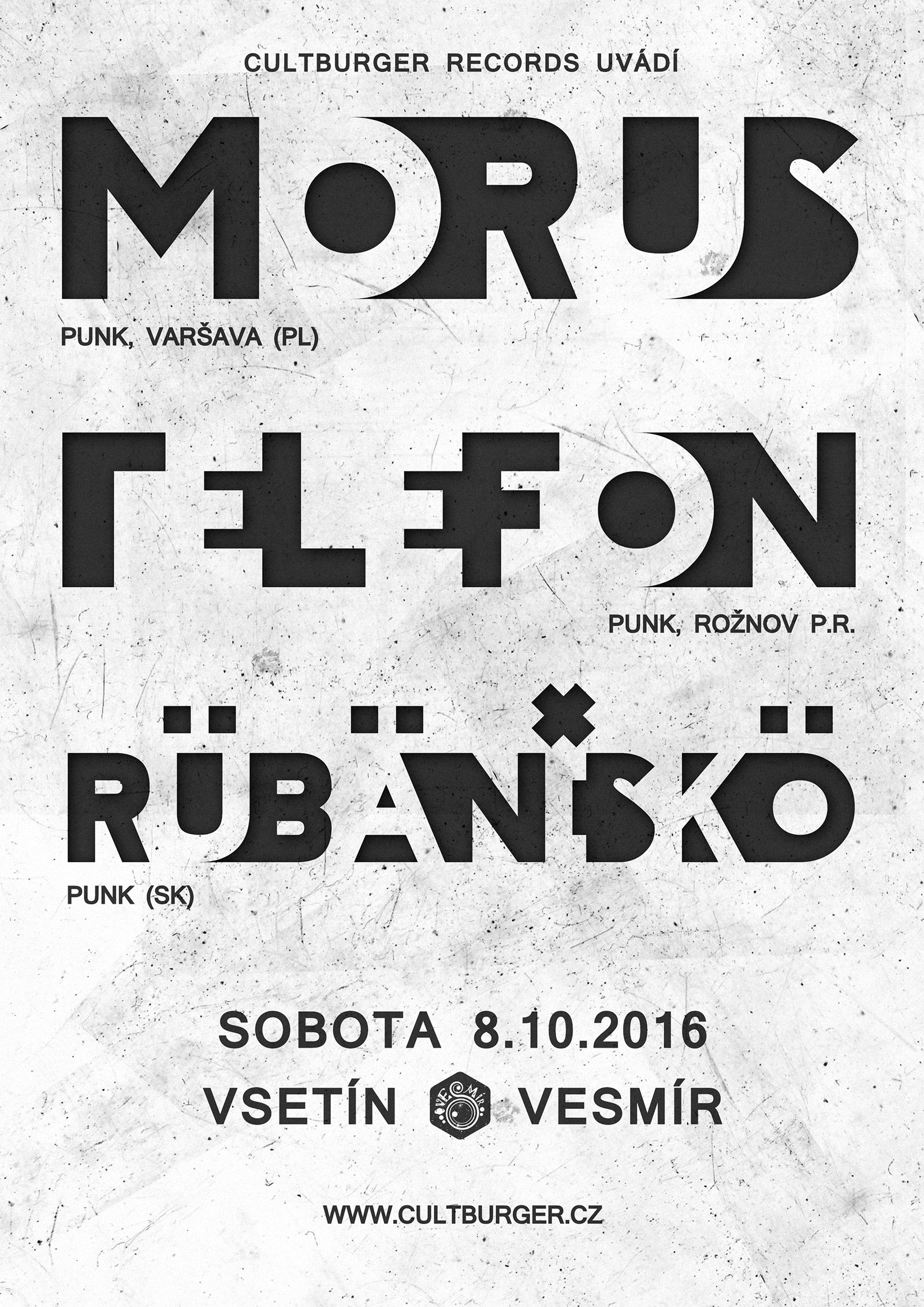 Jediný koncert MORUS v ČR za doprovodu TELEFON a RUBANISKO.Více netřeba dodávat.