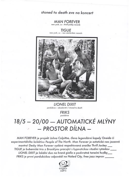Lokální support obstará podvratné taneční duo LIONEL DIXIT a free improv jazz core FRIKS.