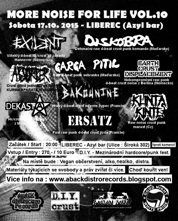 Sobota 17.10.2015 - Liberec - Azyl bar (More Noise For Life vol.10)