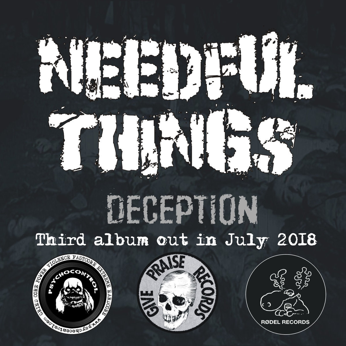 NEEDFUL THINGS vypouští k poslechu třetí album s názvem "Deception". Fyzicky by mělo vyjít letos v létě za spolupráce Psychocontrol Records, Give Praise Records a Rodel Records. K poslechu na psychocontrolrecords.bc.com.