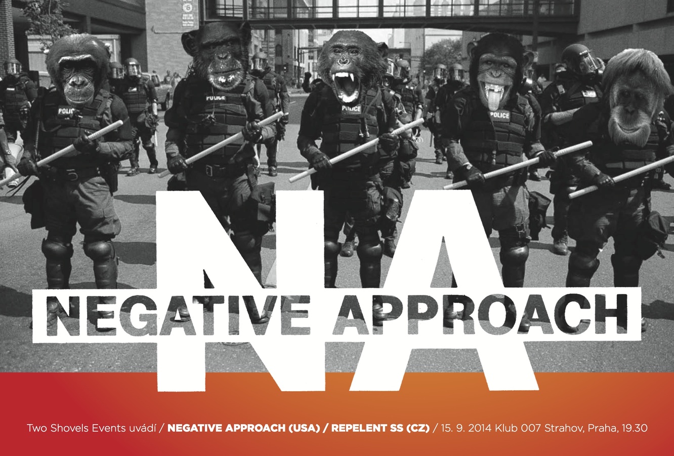 Má cenu představovat Negative Approach? Legendu, která spolu s Black Flag, Minor Threat, Circle Jerks a několika dalšími definovali termín hard core? Detroit - jedno z nejneutěšenějších měst na planetě, nedokáže přimět nikoho k výbuchům pozitivní aury. Nestalo se ani u Negative Approach! Místo údajů, kterejma se můžete - vy kdo nevíte - nakrmit na wikipedii, vám povím příběh. K Negative Approach jsem se dostal přes Integrity, který v záchvatech Svatýho Teroru naservírovali cover od NA, nazvanej Evacuate. Zamiloval jsem se na první poslech a s jistotou, že NA nikdy živě neuvidím, jsem se jejich diskografií - všech očouzenejch diamantů - nazvanou Total Recall (1992 - Touch & Go), ládoval téměř nepřetržitě. Je jen úzkej okruh kapel, u kterejch znám všechny songy nazpaměť a jak jistě tušíte, NA jsou jednou z nich. V roce 2006 se dali NA opět dohromady. Tahle informace mě jen lehce minula v podezření, že NA budou hrát jen nárazově na druhý straně zeměkoule. V roce 2011 jsem potkal svojí životní lásku a jednoho dne jsme se ocitli v Manchesteru. Byl day off a volá mi kámoš, že ten večer, kdy sme měli mít první rande, hrajou NA ve Star & Garter, což je ten nejšpinavější anglickej pajzl u nádraží v M’chesteru, v samozvaným red light districtu, kterej vypadá jako dům z originálního hororu Psycho od Hitchcocka. Pár měsíců před touto seancí mi říká kámoš: “Viděl jsem Negative Approach a jsou pořád nebezpečný!” Rande jak víno! Ten večer hráli ještě Voorhees, stará anglická hard core legenda. Já motýlky v podbřišku, rande a NA v jeden večer?! Zpěvák Voorhees rozjel bitku v pitu. To byla jen přípravka. S prvním tónem Tied Down se strhlo peklo! V osmdesátkách jsem chodil na základku, ale ten večer jsem se vrátil v čase do dob, kdy v jednom pitu potili trika skejťáci, straight edge, punks s pilama, metalisti, crusteři i kapitán Falafel, kterej přinesl pizzu. A očekávám, že to samý se strhne na strahovský Sedmičce, kde Negative Approach doprovodí milovníci skandálů - Repelent SS. Ready To Fight!