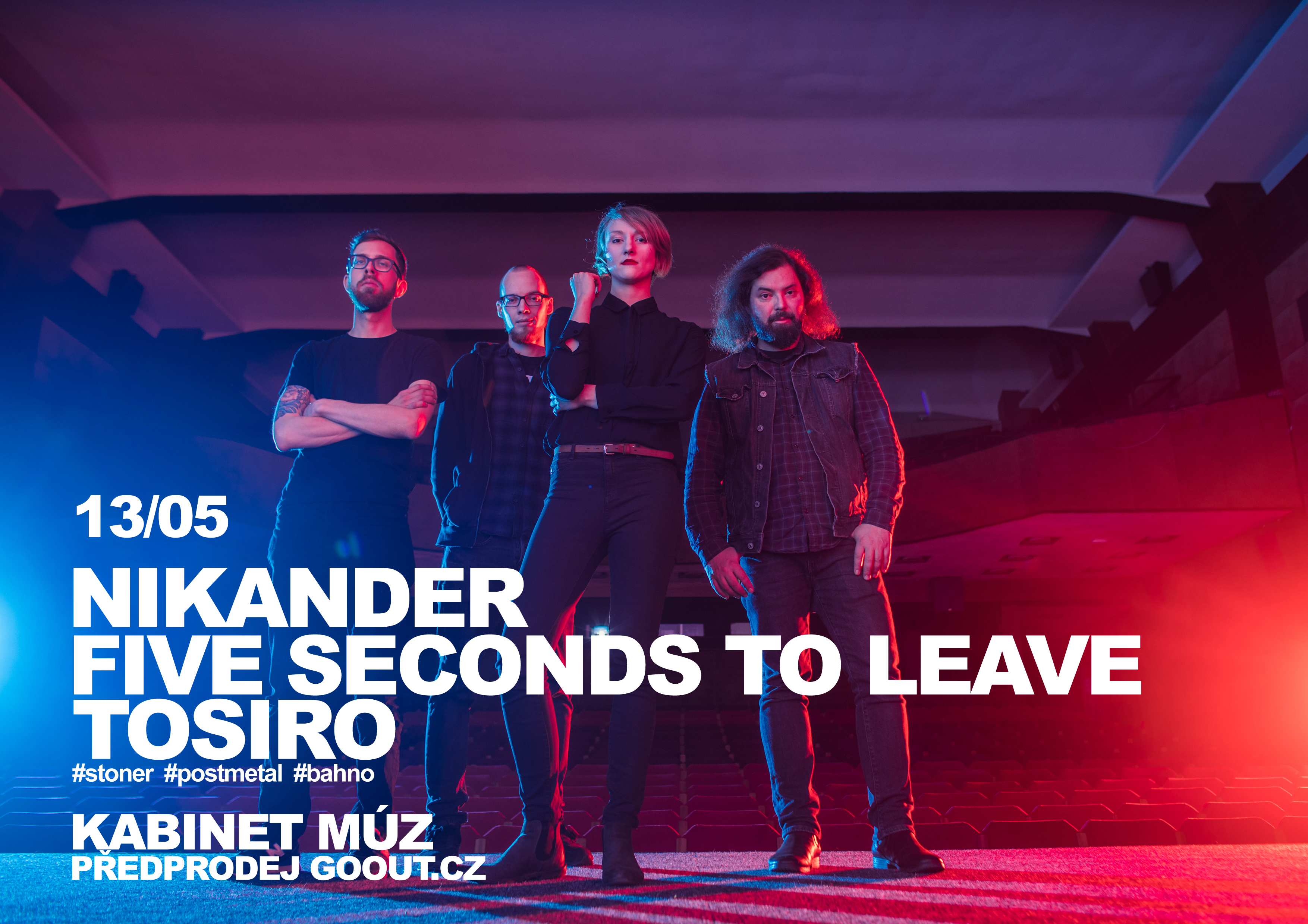 Five seconds to leave (POST-METAL-ROCK, Jindřichův Hradec) Jindřichohradecké trio Five Seconds To Leave buduje svou zvukovou zahradu už od roku 2008. Od původních instrumentálních manter protkaných samply z filmů Davida Lynche apod. se posunuli až k písňové formě. Pozvolně budovaná atmosféra zůstavá, bere si z Neurosis, Pelican nebo Russian Circles, ale i z temného folku nebo bezútěšných newyorských kapel jako Swans nebo Cop Shoot Cop. Melodický zpěv posouvá původní zvuk do neprobádaných sfér k naprosto vlastnímu výrazu. Nenápadný klenot české tvrdé scény! https://www.facebook.com/FiveSecondsToLeave/ https://fivesecondstoleave.bandcamp.com/