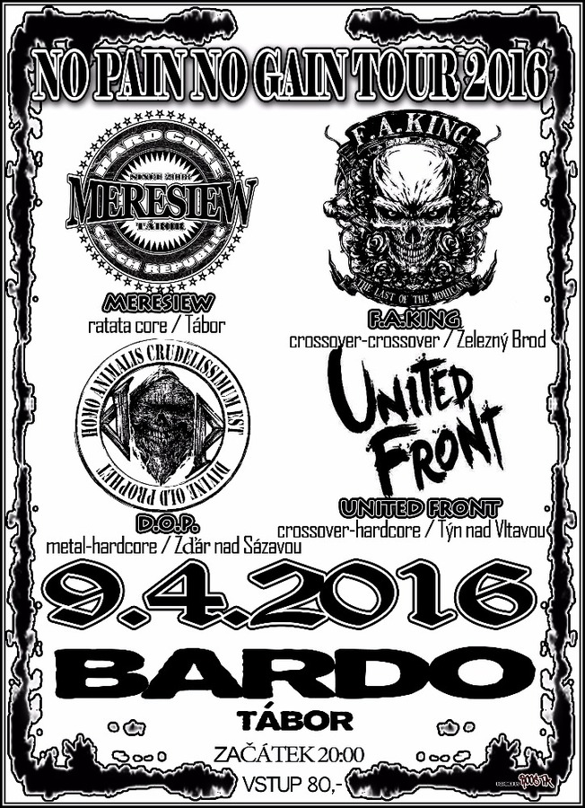 Na rok 2016 je naplánované turné čtyř stylově zpřízněných bandů s názvem NO PAIN NO GAIN TOUR 2016. Kapely: Meresiew, United Front, D.O.P., F.A.King. V rámci tour se odehraje osm koncertů na Vysočině, severu a jihu ČR. Koncerty plné nasazení a energie. V sobotu 9.4. 2016 v táborském kultovním klubu BarDO.
