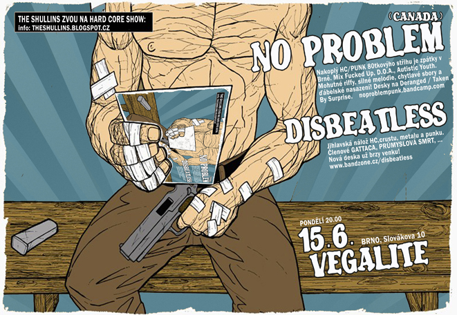 NO PROBLEM (Kanada) – Do Brna se vrací čtveřice z Edmontnu, která se drží osvědčeného hesla „zpátky ke kořenům“. A tak v jejich pojetí hc/punku je cítit jasný odkaz ke zlatým 80tkám, kdy svá pódia ovládaly spolky jako Circle Jerks, Adolescents, D.O.A. Dvě velké desky těchto kanadských spratků, nadchnou všechny milovníky starých časů, kdy v HC/punku se nehrálo na to mít nejlepší účes a své nahrávky co nejvíc studiově přeprodukovat. Velké riffy a přesto pěkná porce melodie, sbory, ďábelské nasazení a špína za nehtama. Pokud truchlíte nad tím, že FUCKED UP už nezní tak jako před vstupem k vydavatelství Matador? Není co řešit, jsou tu No Problem. A aby to bylo stylový, Johan Falco právě z Fucked Up/Career Suicide těmhle hochům pomáhal při natáčení desky. Letošní nový singl jasně dává tušit, že ti co zažili vystoupení kolegů Autistic Youth ve Vegalité, dostanou opět pořádnou facku od kapely která hraje melodický a zároveň dravý HC. Desky, jak už bývá zvykem, vyšli na Deranged / Taken By Surprise records. Živá vystoupení jsou pak umocněna neposedným frontmanem, který si své odzpíval v Wednesday Night Heroes a bubeník měl tu čest načichnout útrobám brněnského podzemí s The Mandates. Kronikáře pak může zajímat, že The Shullins svoji "kariáru" před třemi lety odstartovali právě koncertem No Problem, který se také stal tím největším kasovním propadákem v našich dějinách. Jsme šťastni, že nás ruinují věci, které milujem a za kterými si můžeme opět stát. Neprošvihni svoji druhou šanci! https://noproblempunk.bandcamp.com/ https://www.facebook.com/noproblemedmonton