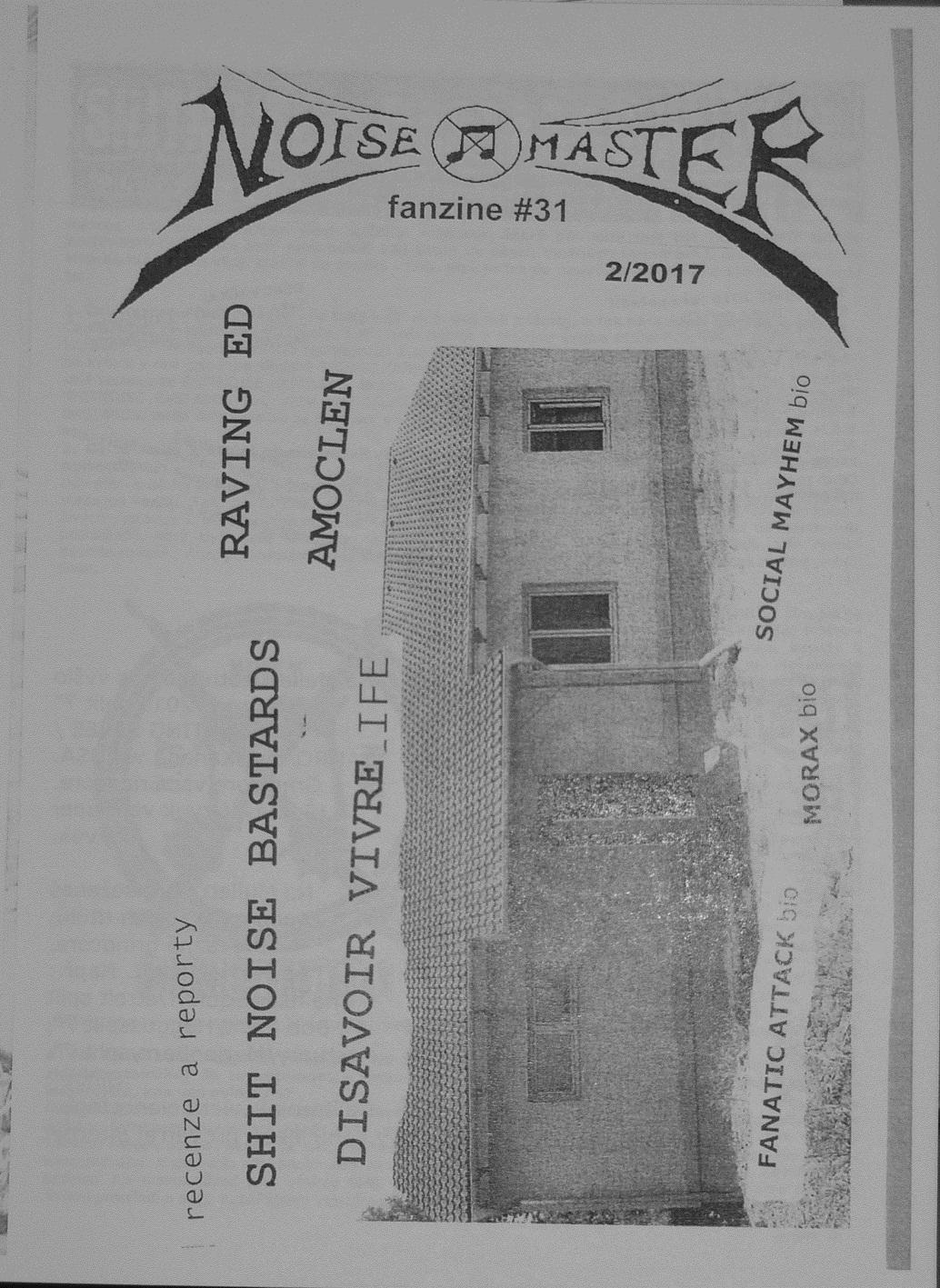 Jestli si někdo myslel, že NOISE MASTER už nevyjde, tak nové číslo (31), ho vyvede z omylu. Zatím asi nejkomplikovanější stavba. Ale je to tu. Klasická xerox produkce. Jako se daří i držet méně stránek, těch tu je 60. V klasické grafice se propleteme rozhovory s DISAVOIR VIVRE, AMOCLEN, nedokončeným povídáním s RAVING ED a zahraniční formací SHIT NOISE BASTARDS. Biografie představí FANATIC ATTACK, MORAX a SOCIAL MAYHEM. Nechybí recenze a tentokrát i reporty z koncertů. Piš si v nejbližších dnech o svou kopii na PHR pro ČR, Adrikovi na Slovensko anebo zkus klasiku: rabies-noise@volny.cz. P.S. ... a jestli se naseru, bude NOISE MASTER vycházet pravidelnějc (Mr.Šakal)