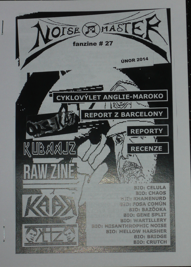 Žádný kecy nejsou třeba. NOISE MASTER fanzine #27 je venku. Rozhovory s KLUTZ, DIS-K47, KAAR, Kubaajzem a s RAWZINE. Krátký biografie s CELULA, CHAOS, KHAMENURD, WARTILLERY, FOSA COMÚN, MISANTHROPHIC NOISE, BAZÖOKA, GENE SPLIT, MELLOW HARSHER, BRIDGE, CRUTCH. Pár drobků ze sekce recenzí a reportů. Od Zbyni první část cyklovýletu Anglie – Maroko a report z Barcelony od Peťana. Všechno natěsnáno do 128 stran. Xerox. Zkus napsat na rabies-noise@volny.cz