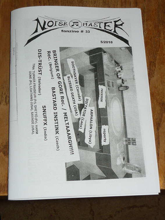 V květnu vyšlo 33 číslo klasického xerox fanzinu NOISE MASTER. První várka putovala do Nepálu a druhá hromádka se právě koncem června pomalu dostává na domácí půdu. Standardní grafika a obsah. Rozhovor s BASTARD INSTINK, DIS-TRÜST (Salvador), BRINGER OF GORE Rec. / MELTAAARGH!!!! Rec. (Belgie) a SNUFFX (Indie). Biografie ARPHALON (Libye), DICTATOR (Laos), SOOTHSAYER (Kanada), BLESSED DEATH (USA), dále TINA TURNER FRAISEUR (Francie), GHETTÖ (Francie), HARM DONE (Francie), LOATHING (USA) a SAVAGE (USA). Reporty a recenze a recepty. 52 stran. Nic víc, nic míň. Pořídíš zde: rabies-noise@volny.cz nebo u distributorů jako PHR, Insane Society.