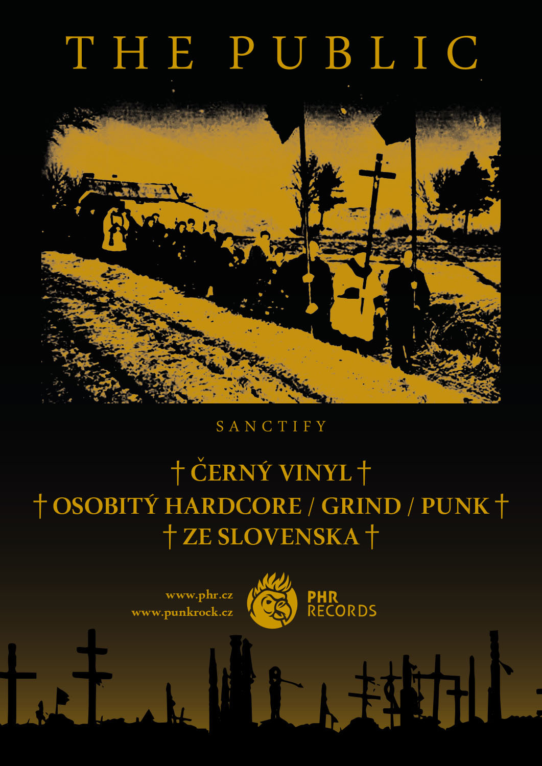 U PHR Records právě vyšla novinka v podobě alba slovenské metal / punk / grindové kapely THE PUBLIC. Album Sanctify vyšlo na černém vinylu tak i v barevné limitované edici určené pro předobjednávky. "Jsou kapely, u nichž je od prvopočátku zřetelné, že se mermomocí snaží bušit na bránu slávy a obecného povědomí. A pak jsou naopak kapely, o kterých nic moc nevíte, a přitom jsou schopny vám kdykoliv svou produkcí vyrazit dech. Příkladem těch druhých jsou bezpochyby slovenští The Public. Na prknech, co neznamenají zase tolik, se pohybují už pěknou řádku let, a přitom se maximálně občas objeví info, že kdesi hrají a výjimečně se vyloupne rozhovor v nějakém nízkonákladovém podzemním fanzinu. Utajená kapela, dalo by se říct… jenže pak je ale uslyšíte a spadne vám čelist." Více na punkrock.cz.