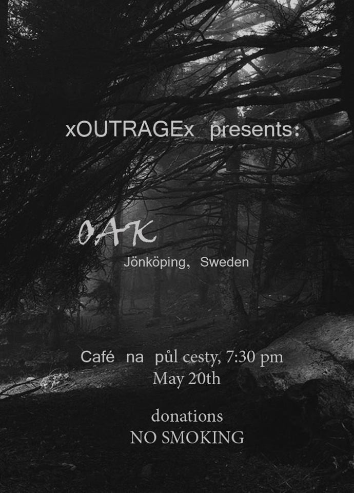 Kapelu OAK jste měli možnost vidět na půlce v únoru 2015 s kapelou Disembarked, nebo v létě na Fluffu, a některé jejich členy jste měli možnost 2x na půlce vidět s kapelou murderofcrows. Já měl možnost OAK vidět zhruba 6x nebo 7x a pokaždý mě to naprosto rozsekalo. euforie od začátku až do konce.