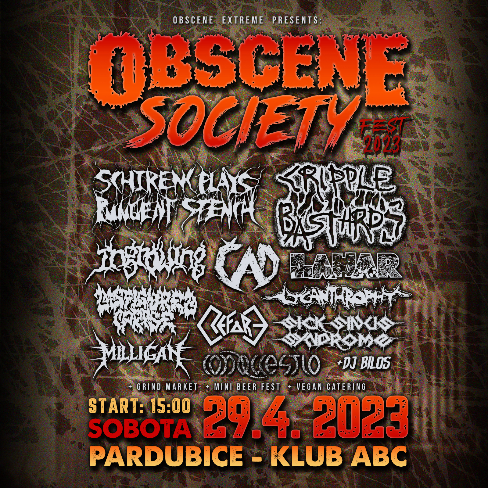 All of this is made possible by the club ABC in Pardubice, where Obscene Society Fest will be for the very first time and hopefully it will continue the streak of those successful editions, because Obscene Productions is coming back to the scene in 2023 and the first strikes will be this festival and the second full lenght album, grind pathologists, Sick Sinus Syndrome and who knows what else is waiting for us…