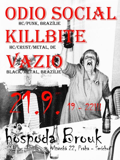 ODIO SOCIAL - tenhle nabušený hc/punk z Brazílie jste mohli viděl před dvěma lety v Broukovi na Smíchově. Byla to neděle a ač byl Brouk pro nás trochu nejistý pokus, dorazilo přes 80 lidí a byl to super koncert. K nové desce, další evropské tour............
