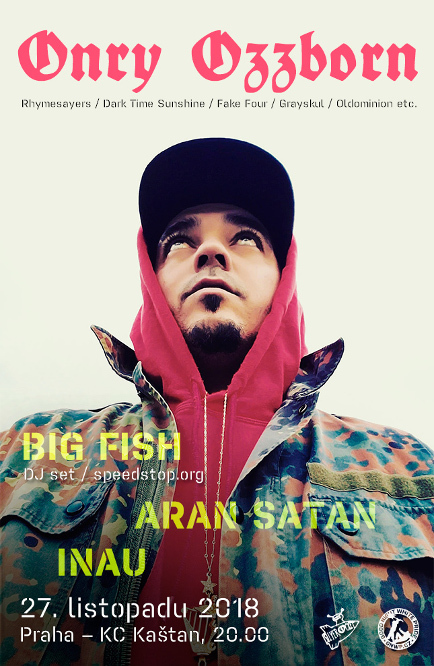 Onry Ozzborn (vlastním jménem Michael Martinez) se tady krátce mihnul už před rokem - a zanechal mohutnej dojem. Mírně introvertní rapper vydává mimořádně zajímavý desky (mj. na Fake Four), kde mu s chutí hostujou lidi jako AESOP Rock, P.O.S, Homeboy Sandman, Sadistik atd., sám má pak coby člen respektovanejch Dark Time Sunshine domov na Rhymesayers Ent. Onryho rap je těkavej, ale nesmírně sugestivní. Evropský turné k nový desce „Nervous Hvnd“ zakončí 27. listopadu v Kaštanu, společnost mu budou dělat Big Fish (Speedstop.org), Aran Satan (poprvé s debutovou kazetou „MVP“, která vychází na Silver Rocket) a Inau