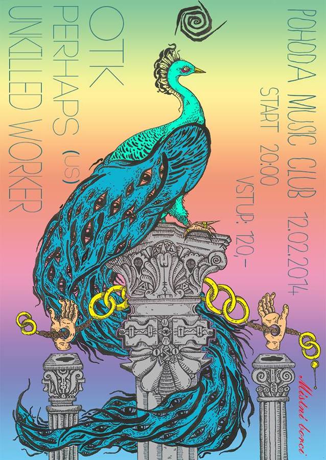 ~how can i explain the way it is? the way it isn't?~ OTK /alternative rock, silver rocket K nesmrtelnosti vede i civilní cesta, hrát si na enigmu není třeba. Pole jde přejít i tou nejkratší cestou, zablácený kanady lidi nosí čistě proto, aby se jich ptali, kudy šli. Zeptej se svýho srdce, jak moc jsi starej. Hudba OTK se ptá často. Odpovědi hledej sám, cesta k nim je krásná. http://www.silver-rocket.org/kapely/otk http://www.noise.cz/otk/ PERHAPS (us) /progressive rock, math rock Perhaps zní jako apokalyptický soundtrack k těm pár vteřinám mezi zakopnutím a následným pádem ze schodů. Chvíle, kdy vám před očima neprobíhá celý život, jenom pár předchozích hodin, během kterých jste se dostali do stavu, kdy je onen pád ze schodů nevyhnutelný. Překotná rytmika, jazzový feeling. Vyzvracet se hned a líp usnout, nebo se poddat bublání v útrobách? Hranici únosnosti si nastavte sami. V každém případě je to památný zážitek. http://perhaps.bandcamp.com/ https://www.facebook.com/666perhaps666?fref=ts UNKILLED WORKER /singer-songwriter, silver rocket Armáda démonů života v těle kanadské hory. Šest strun a hlas útočí na kosti a klouby a prach z nich pouští po větru. Neboj se zimy, větru, tvrdí chlapi maji těžký duše plný vzpomínek na krásný toky ztracené země. Fear not the river. http://www.silver-rocket.org/kapely/unkilled-worker http://unkilledworker.wordpress.com/unkilled-worker/ Start: 20:00 Vstup: 120,- --> 160,-